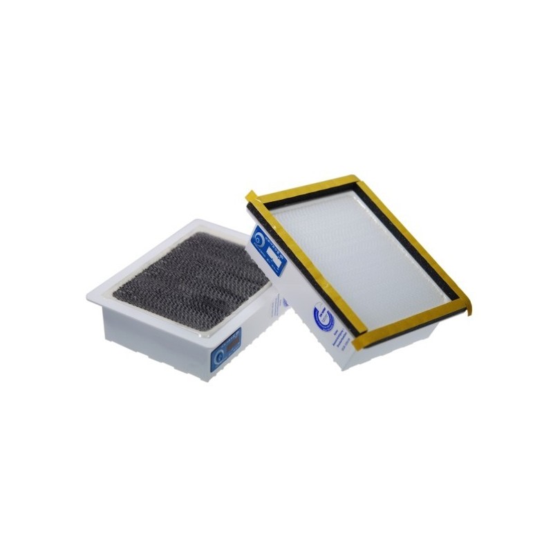 Το φίλτρο λειτουργεί με ηλεκτροστατική φόρτιση και περιλαμβάνει ένα πρόσθετο στρώμα ενεργού άνθρακα και επικολλάται εύκολα στο εξωτερικό μέρος του μηχανήματος και συγκεκριμένα στο σημείο εκπομπής ρύπων που εκπέμπονται από τον ανεμιστήρα. Το πατενταρισμένο μέσο φιλτραρίσματος με ηλεκτροστατική φόρτιση δεν επηρεάζει την απόδοση των μηχανημάτων σας.